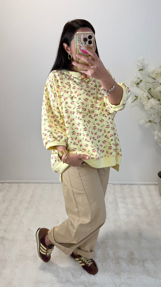 SWEAT FLEURIES JAUNE
